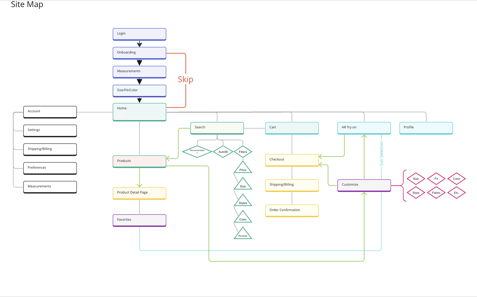 Users often had trouble visualizing how a suit would look on them when purchasing online. This made it challenging for users to make informed decisions when purchasing suits. So, our second objective was to allow users not only to customize their suit, but to see how it would look on them.